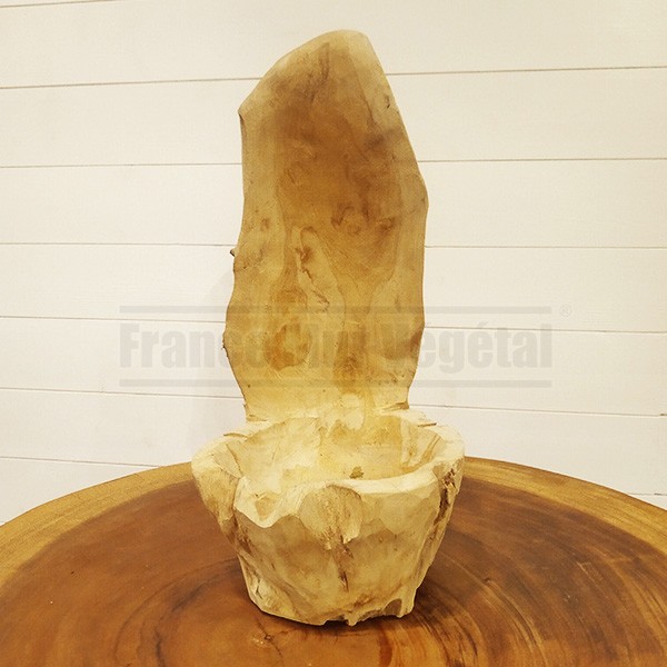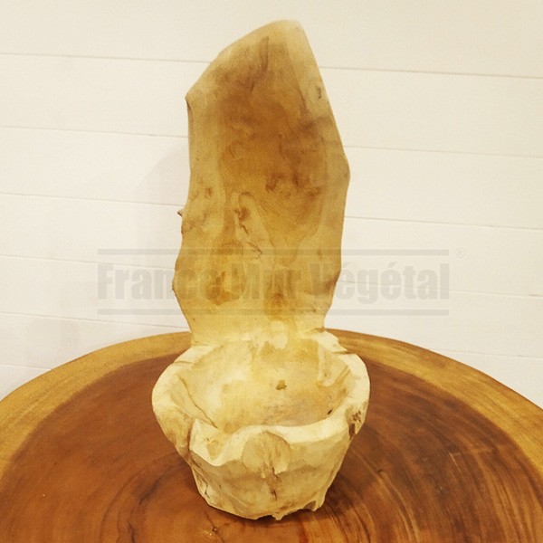 Pot sculpté dans un tronc en bois de Suar massif ayant un diamètre de 21cm, mesurant 45cm de haut, hauteur de la base 12cm. Peut être utilisé pour y mettre une plante, créer une composition végétale avec des végétaux stabilisés ou artificiels, comme un élément décoratif ou en tant que vide poche.