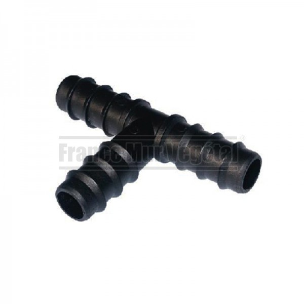 T Ø25mm Eco Can, raccord cannelé. Permet d’effectuer des raccords avec un tuyau d’irrigation d’un diamètre de 25mm. Idéal pour créer le circuit d’arrosage d’un mur végétal.