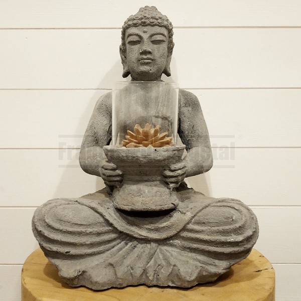 Statue Bouddha en ciment à poser avec photophore et bougie d’une dimension de 40x30x20cm. Cette statuette peut être mise sur un meuble, un piédestal ou une sellette. Idéal pour décorer votre maison ou lieu professionnel (bureau, bar, café, hôtel ou restaurant).