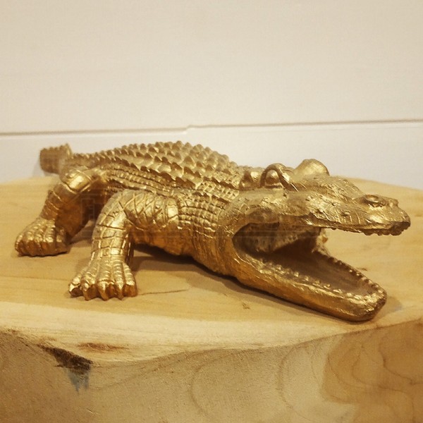 Crocodile doré en résine 39x15x5cm